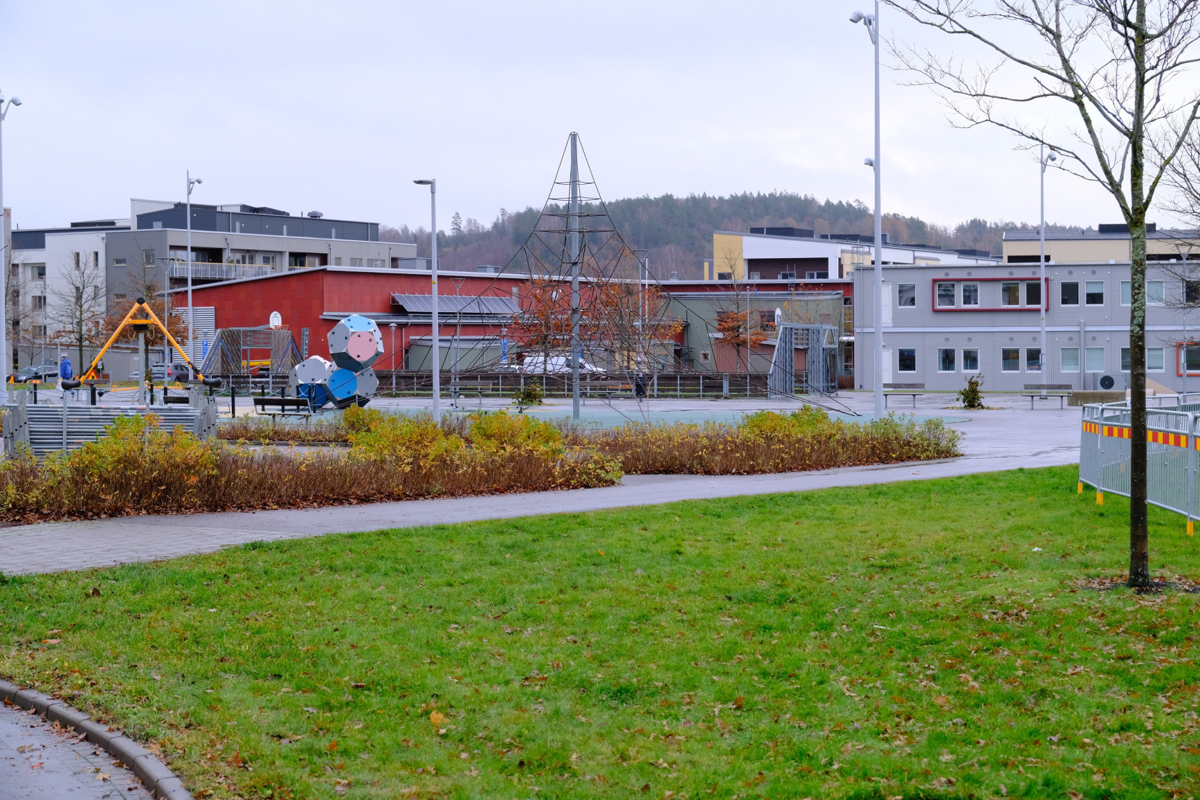 ”stora lekplatsen” håller på att ses över och kanske kommer ändringar att göras. Samtal med Björkrisskolan pågår också angående detta.